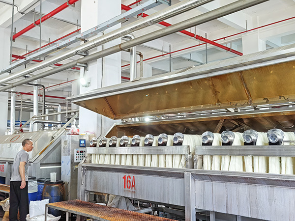 Jiaxin Textile invested in the integration of spinning and dyeing, and is now building an integration of industry and trade, and is going all out to enter the international market! We have introduced advanced spinning equipment and winding equipment, which can produce various specifications of ordinary twist and high twist yarn with a twist count of 128nm. The winding equipment is an ordinary winding machine with loose winding, fast speed, good forming, uniform tension and stable elasticity. The equipment has a complete control system, keeps the yarn tension uniform, has an anti-overlapping device, and has high production efficiency while ensuring product quality.